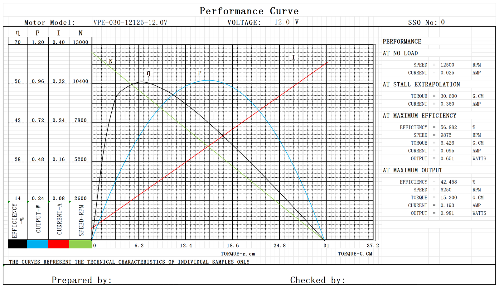 Model No. Nominal Voltage No load Max Efficiency Stall