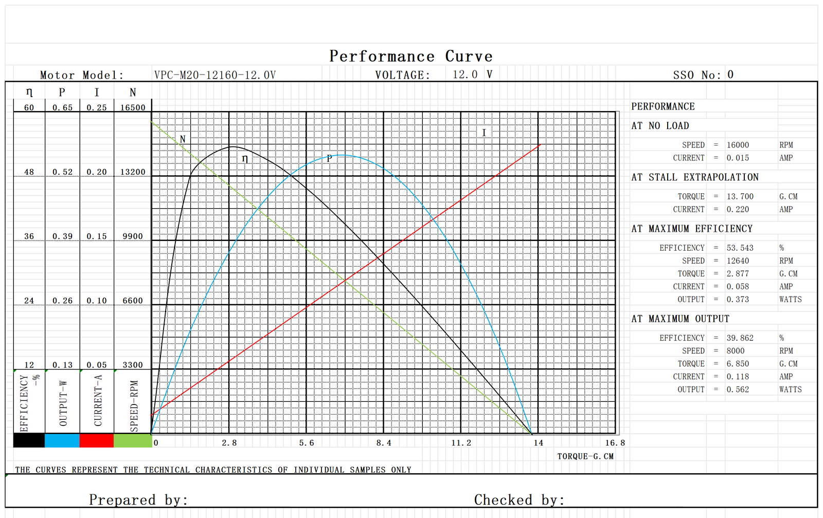 | Model No. | Nominal Voltage | No load | Max Efficiency | Stall | |||||