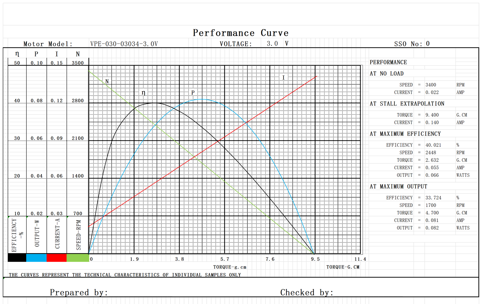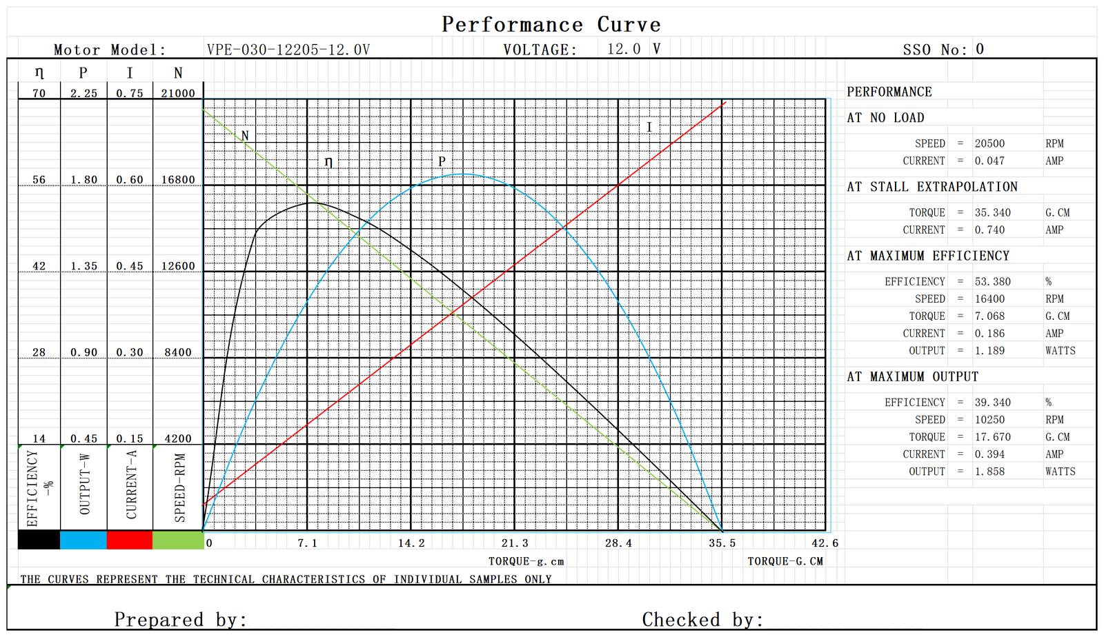 Model No. Nominal Voltage No load Max Efficiency Stall